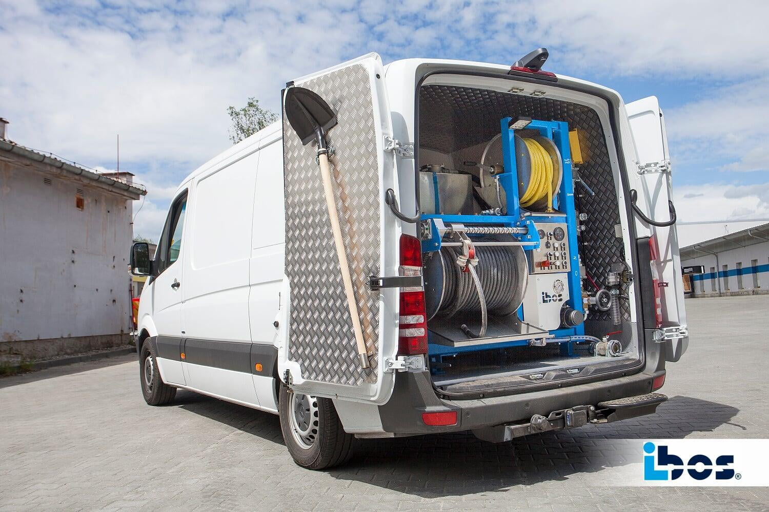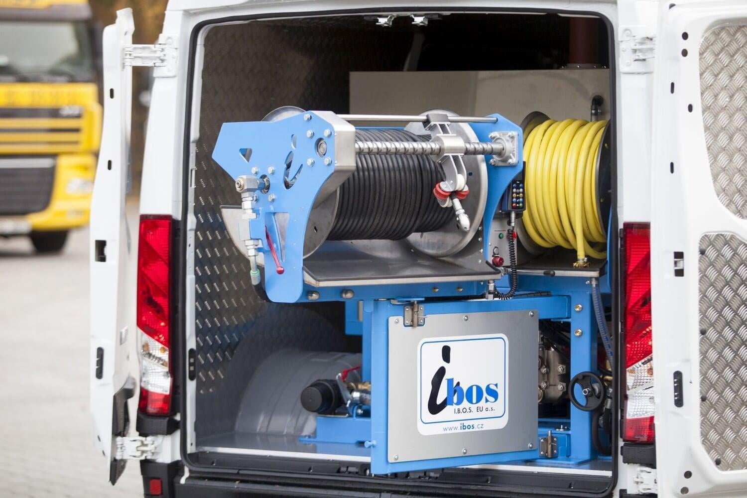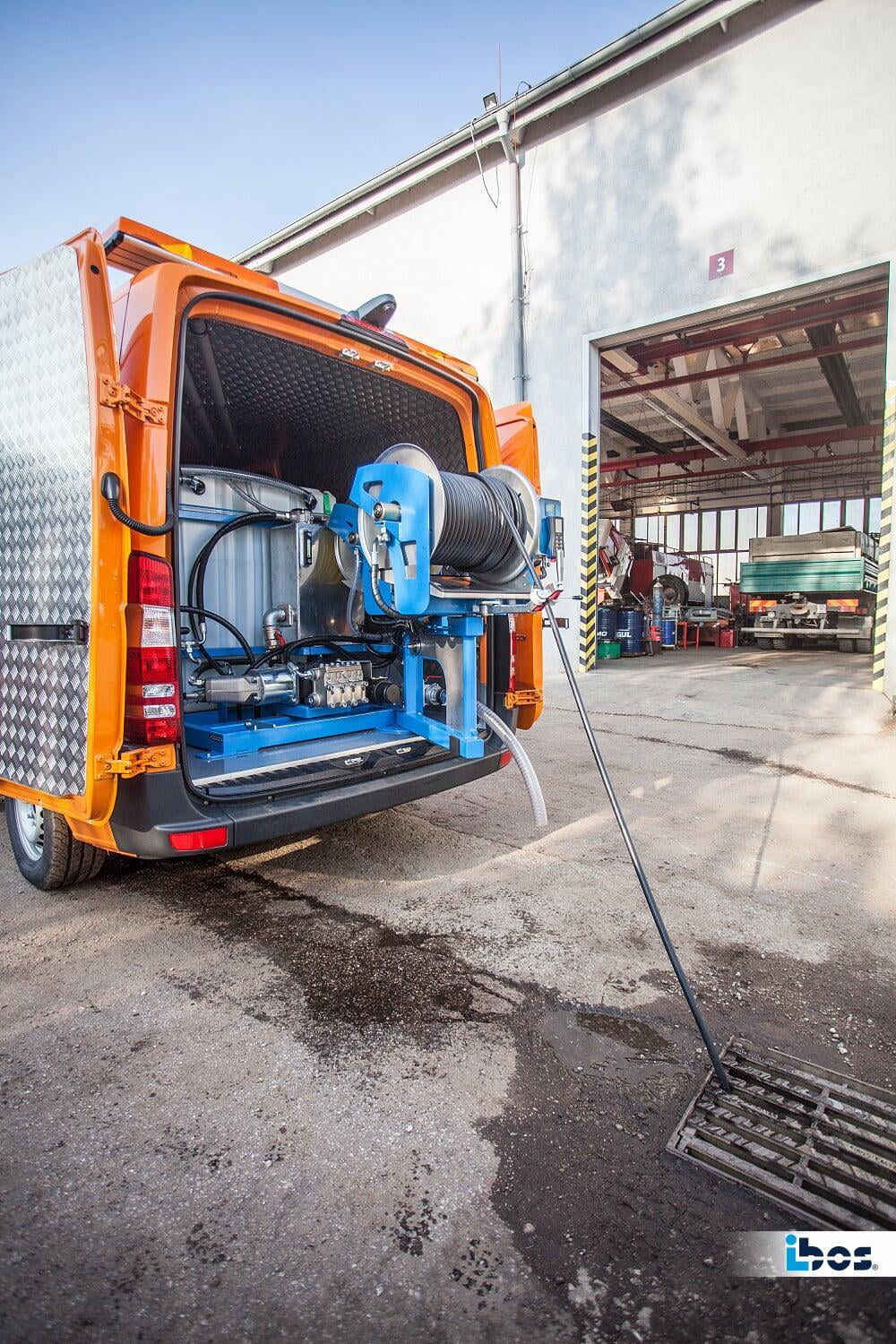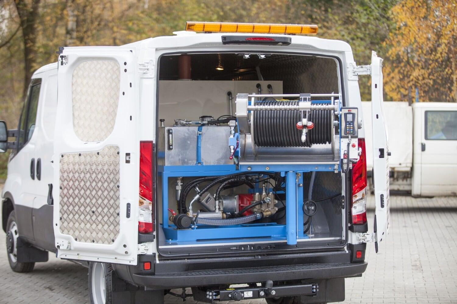 - Funkfernbedienung mit bis zu 100 m Reichweite im freien Raum, Steuerung von Motordrehzahl und Druck, Hydrauliksteuerung, Notaus